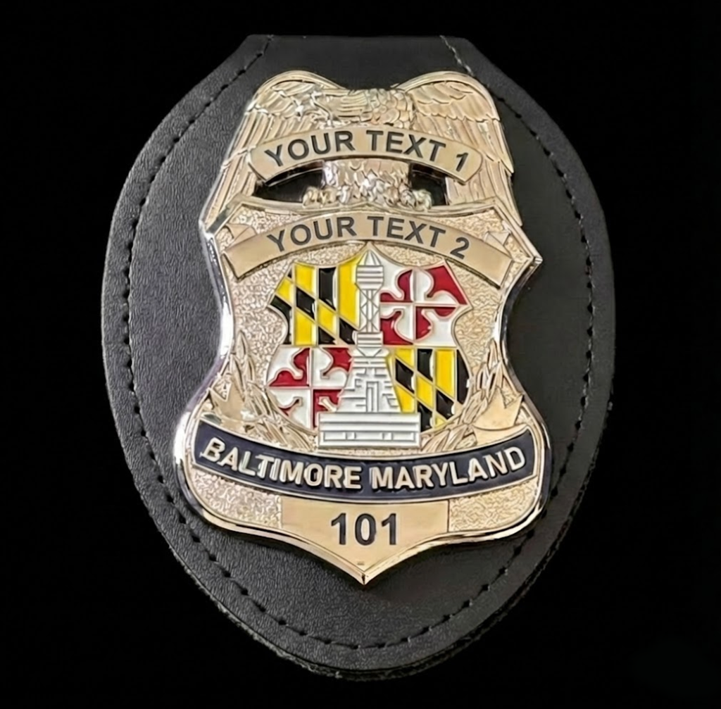 This is a full-size Baltimore Maryland Police Badge Customizable Number Replica Movie Props with a Safety Pin on the backProudly , the highest police quality, the finest details and materials, sturdy and durable! Brand new with highest police quality, really worthcollecting! Add it to your collection or make a great gift! Don't miss out!