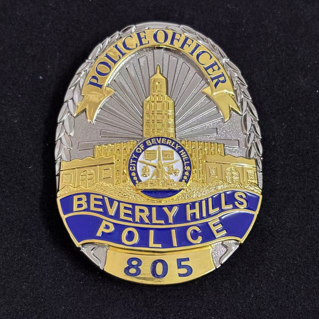 Introducing a striking replica of the Beverly Hills Police Department (BHPD) officer's badge, a must-have for collectors and enthusiasts. This badge is crafted to the highest standards, ensuring the utmost detail and three-dimensionality. It's a brand new piece, perfect for adding to your collection or as a gift for someone who appreciates the finer details of law enforcement memorabilia.