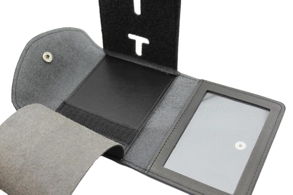 When the wallet is opened, there are two sides, one side can be fitted with all sizes of law enforcement & police badges; the other side can be inserted into ID cards, credit card, driver's licenses, or other documents.