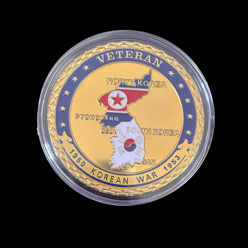 Honor Our Real Heroes - Korean War 1950-1953" Challenge Coin – A timeless tribute to the bravery and sacrifice of Korean War veterans. Features iconic battlefield imagery, honoring their enduring legacy. A solemn keepsake for veterans, families, and history enthusiasts