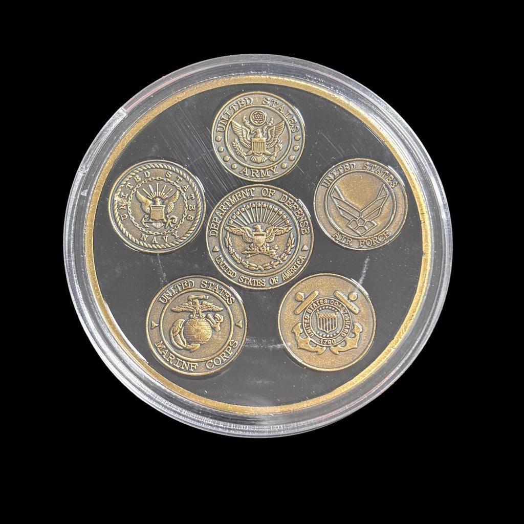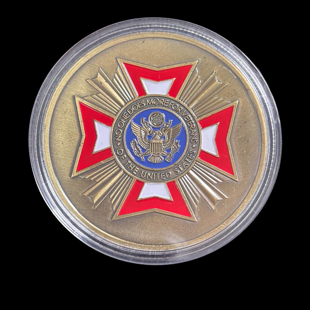 Honor America's heroes with this 'No One Does More for Veterans' challenge coin! Featuring patriotic emblems and a tribute design, it celebrates unwavering support for U.S. veterans. A must-have for advocates, service members, and patriotic collectors