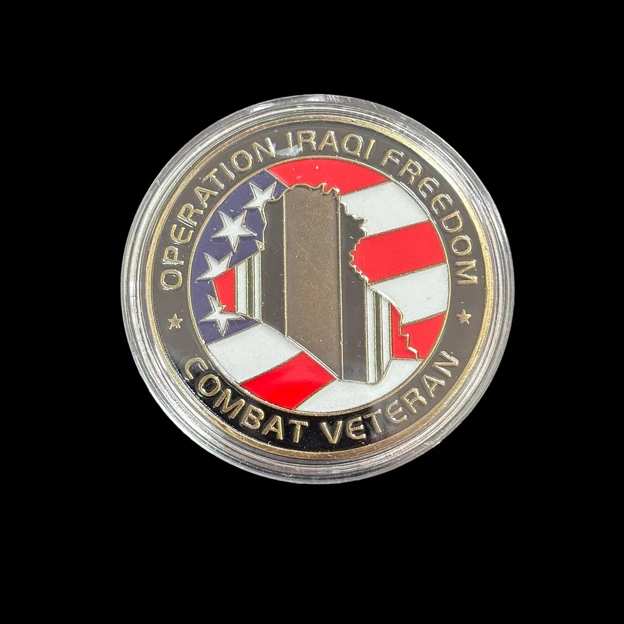 Honor Iraq War heroes with this Operation Iraqi Freedom Combat Veteran (OIF) challenge coin! Detailed combat insignia and Middle Eastern motifs pay tribute to 2003-2011 service. A revered keepsake for veterans, families, and military historians