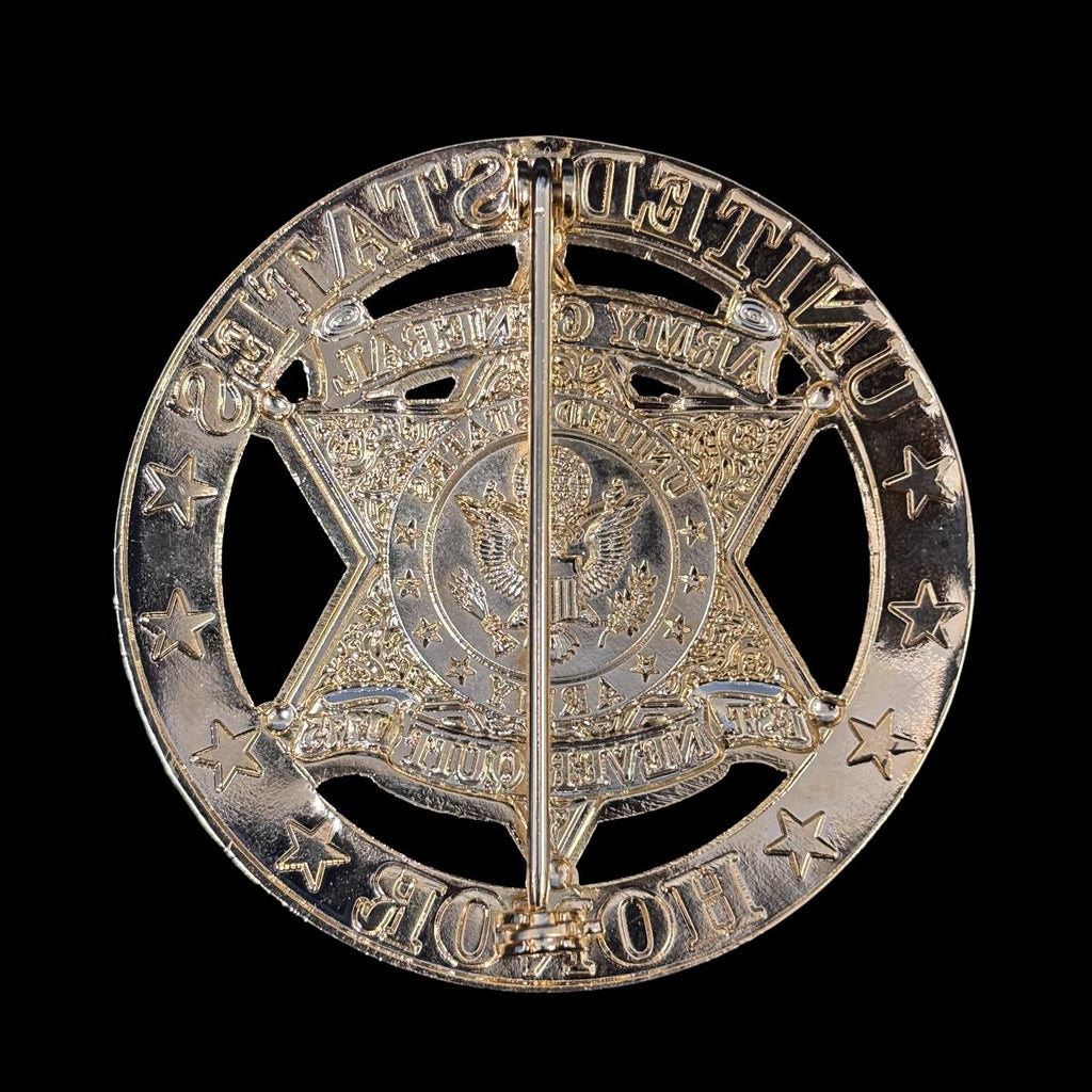 Presenting an exceptional U.S. ARMY GENERAL HONOR BADGE Replica, an ideal collectible for enthusiasts of law enforcement memorabilia or those seeking authentic movie props. This badge is crafted with superior quality, featuring outstanding detail and a three-dimensional structure that exemplifies the highest standards in the industry.