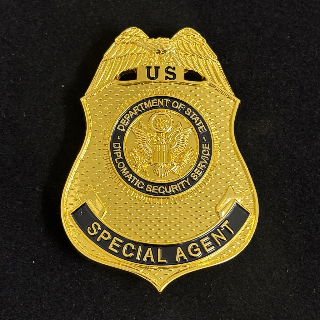 Presenting an exquisite US DSS (Diplomatic Security Service) Special Agent Badge replica, an exceptional collectible for those interested in law enforcement memorabilia or in need of high-quality movie props. This badge is crafted with superior quality, showcasing exceptional detail and a three-dimensional structure that represents the highest standards in the industry.