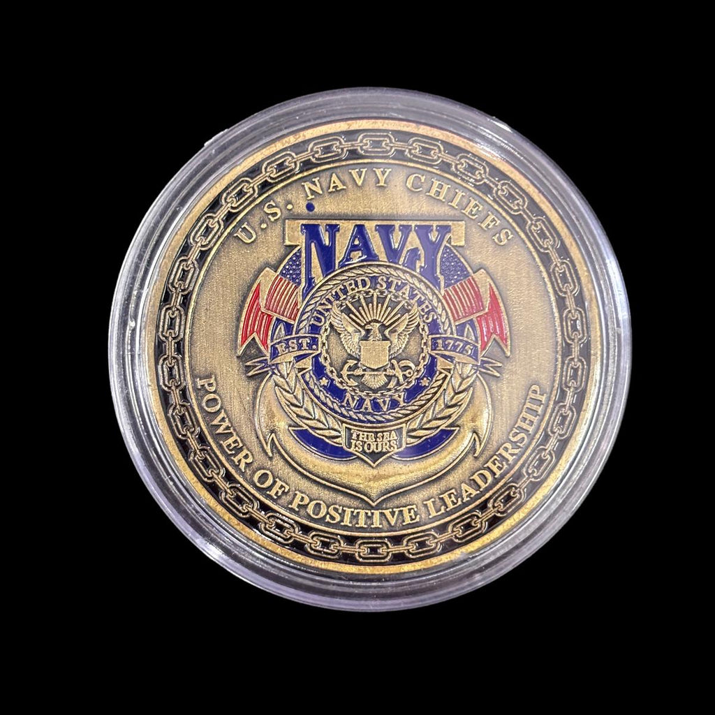 U.S. Navy Chiefs - Power of Positive Leadership" Challenge Coin – Celebrates the leadership of Navy Chief Petty Officers with the iconic fouled anchor and CPO creed. A tribute to their mentorship and service
