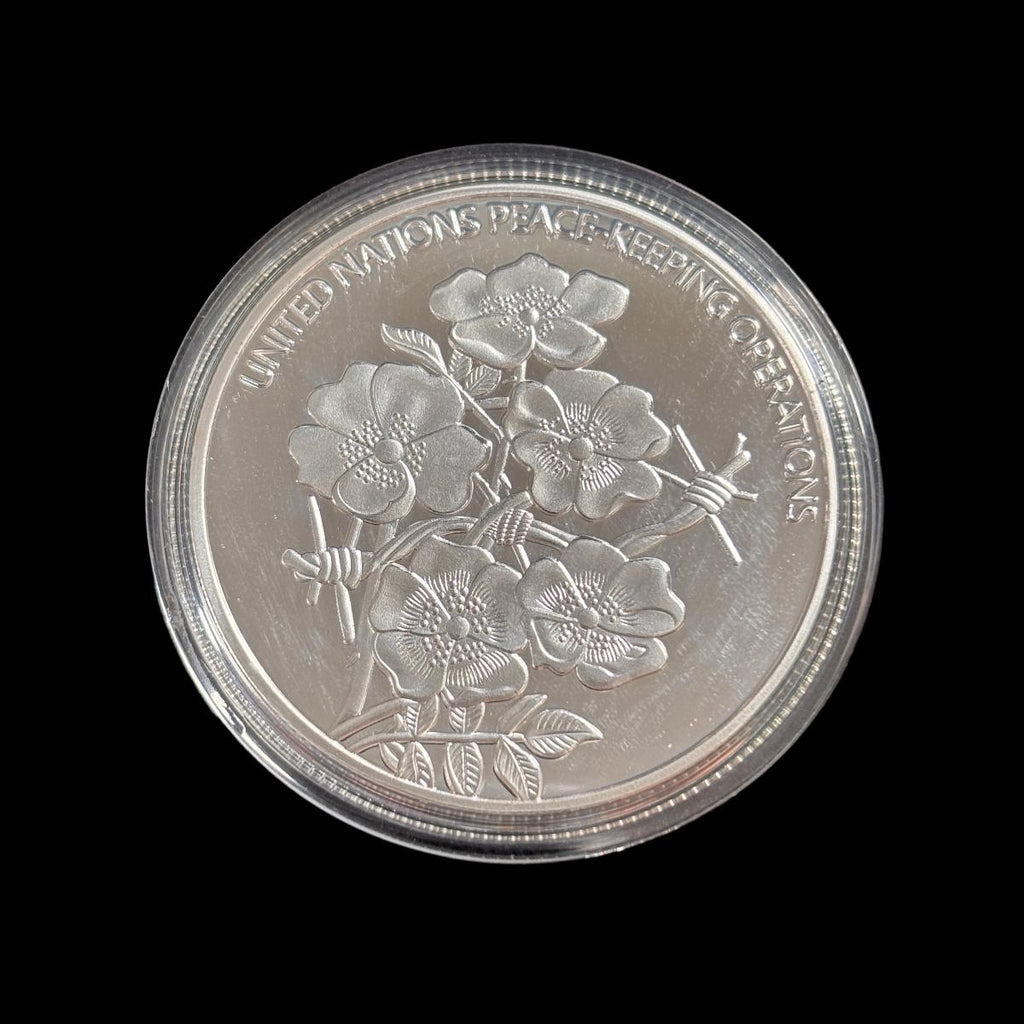 Celebrate global unity with this United Nations official challenge coin! Featuring the iconic olive wreath emblem and peacekeeping motifs, it honors international cooperation. A meaningful collectible for diplomats, NGO workers, and world citizens
